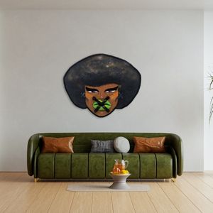 Elle représente un visage féminin au regard intense, impossible à ignorer.